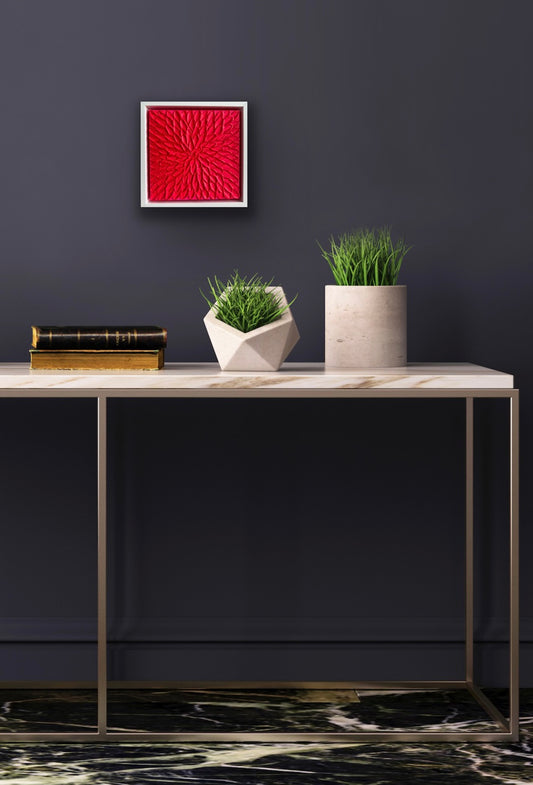 BURGUNDI ABSTRACT MINI 18x18 cm acrylic on canvas original painting FRAMED