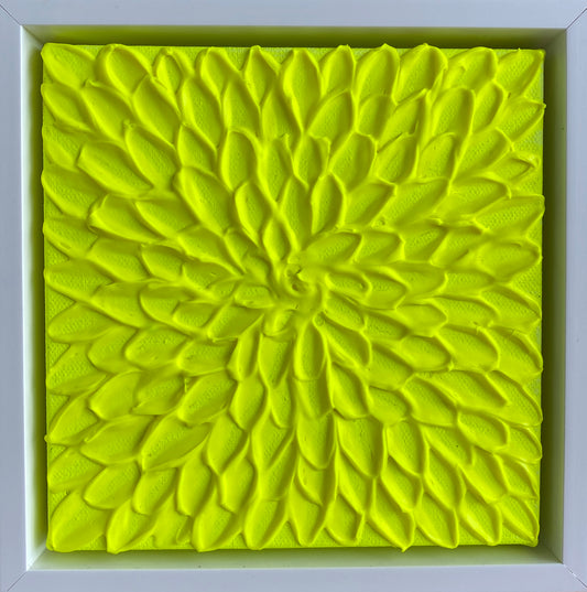 FLUORO YELLOW ABSTRACT MINI 18x18 cm acrylic on canvas original painting FRAMED