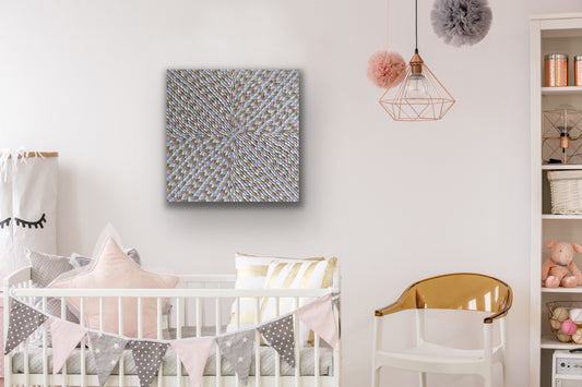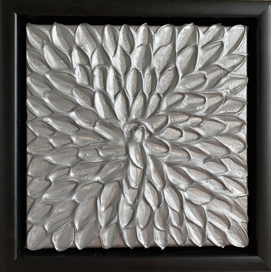 SILVER ABSTRACT MINI 18x18 cm acrylic on canvas original painting FRAMED