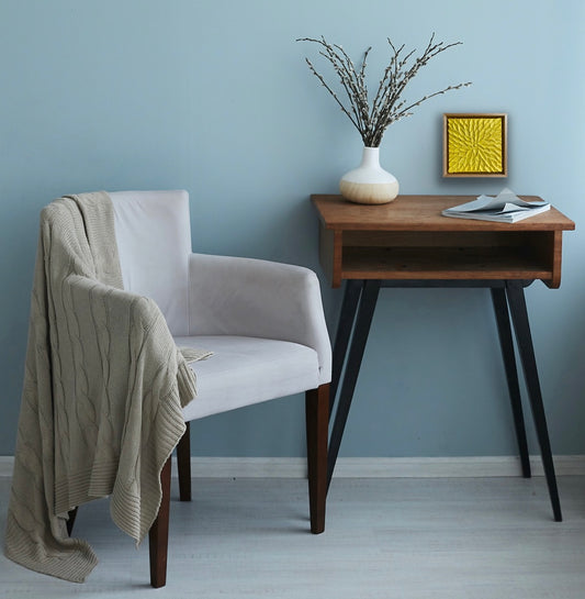 YELLOW ABSTRACT MINI 18x18 cm acrylic on canvas original painting FRAMED