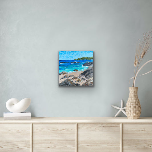 BEACH AND ROCKS 30.5x30.5 cm acrylic on canvas original painting