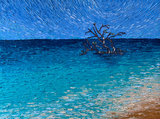 BEACH AND PANDANUS 30.5x30.5 cm acrylic on canvas original painting