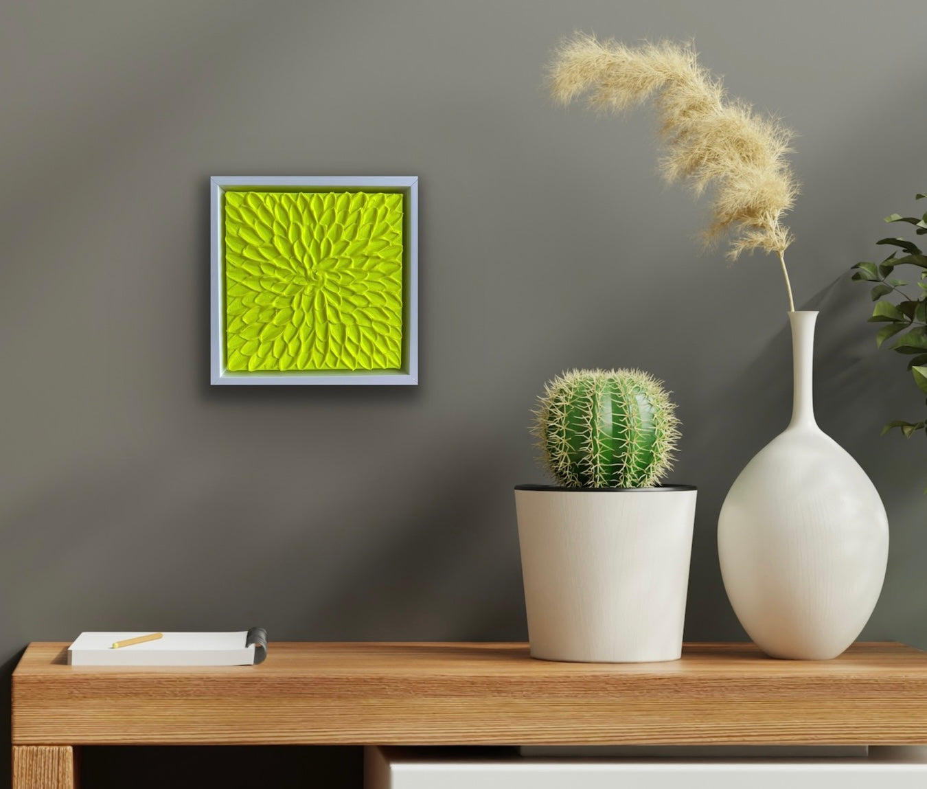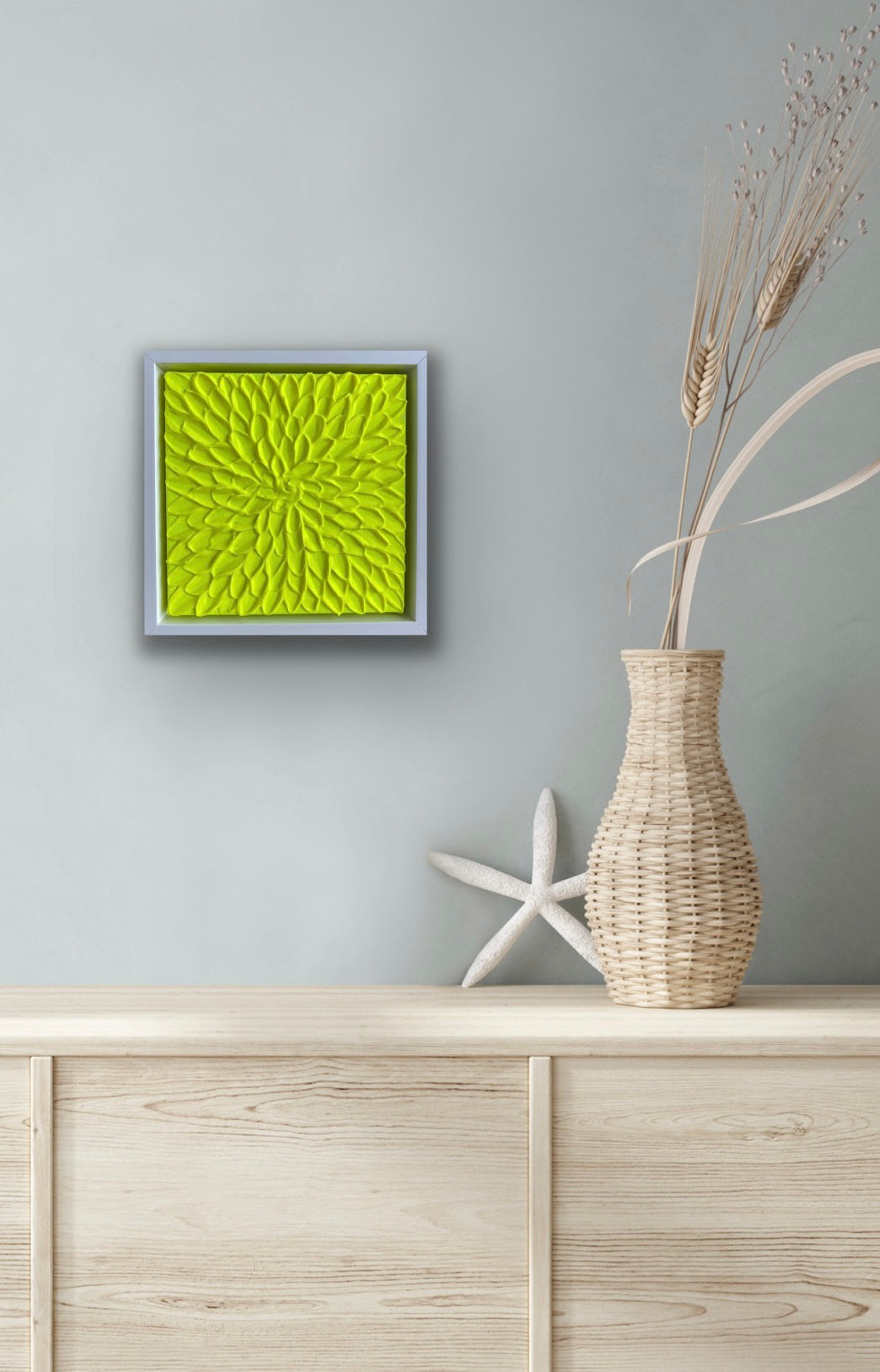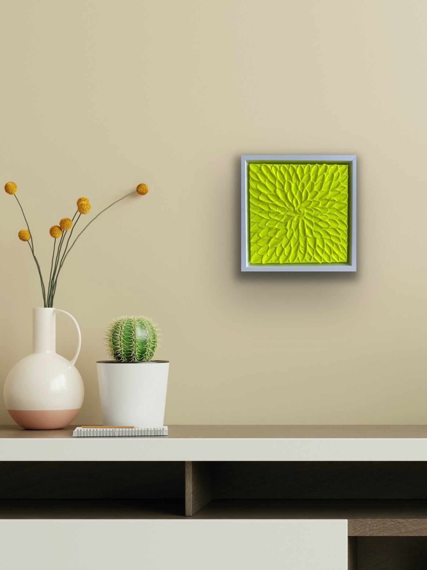 FLUORO YELLOW ABSTRACT MINI 18x18 cm acrylic on canvas original painting FRAMED