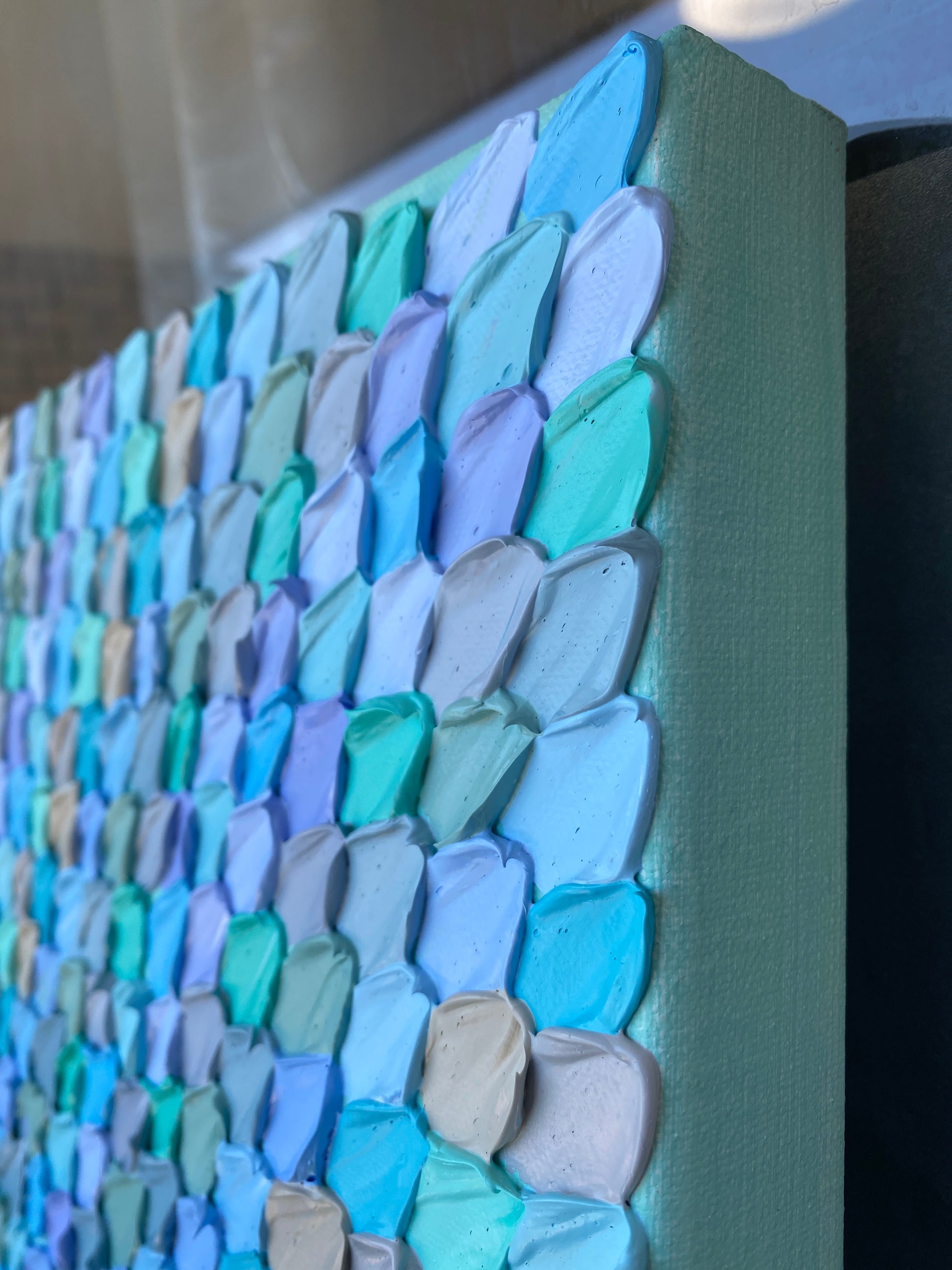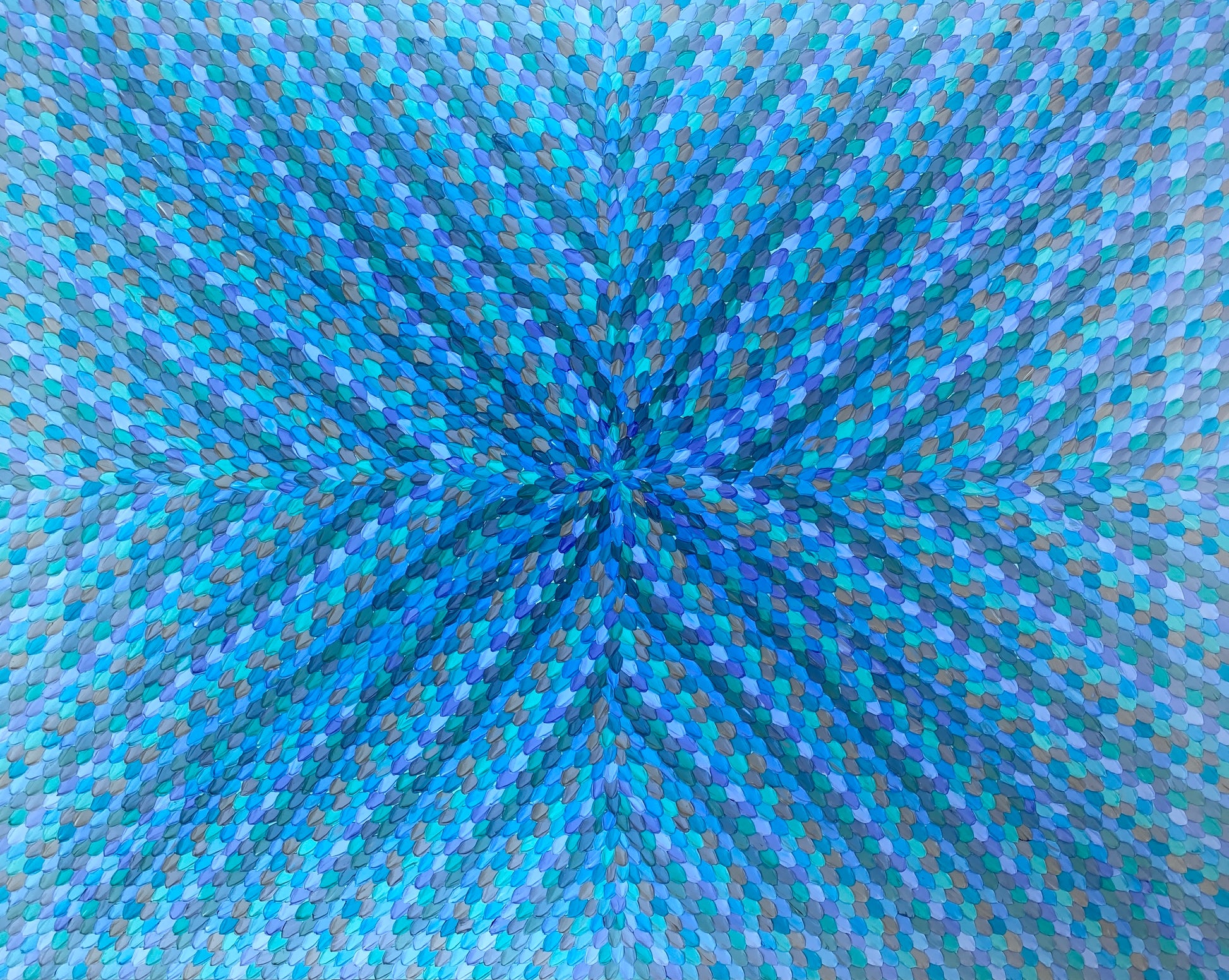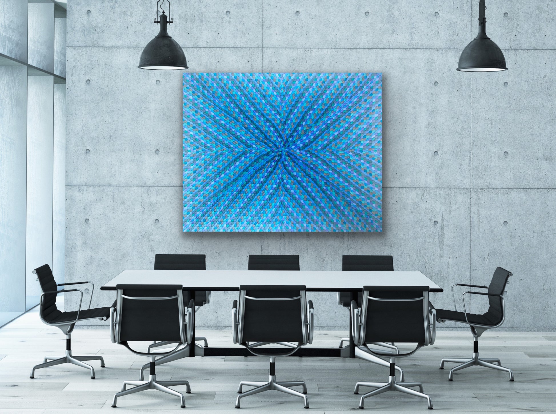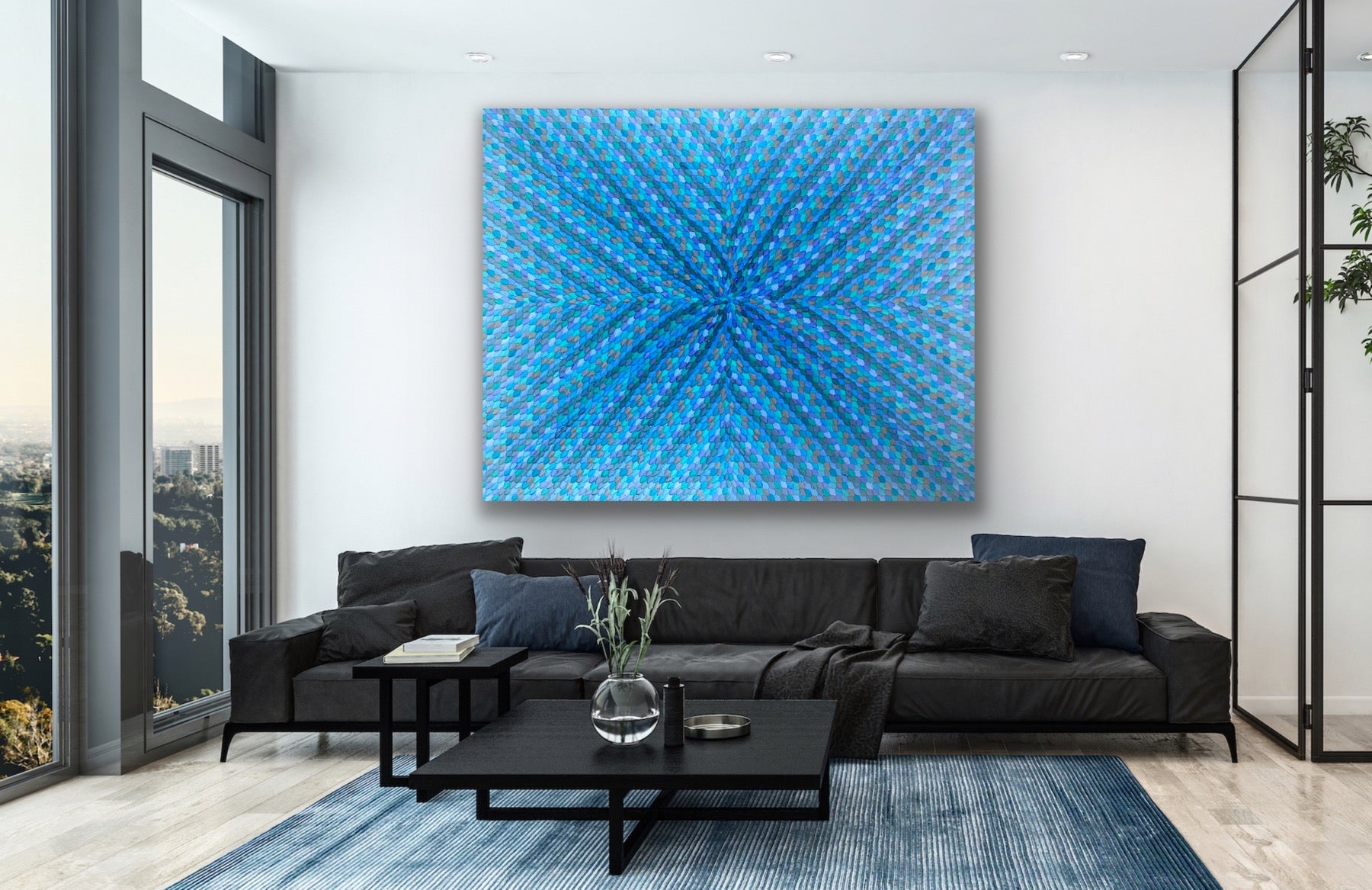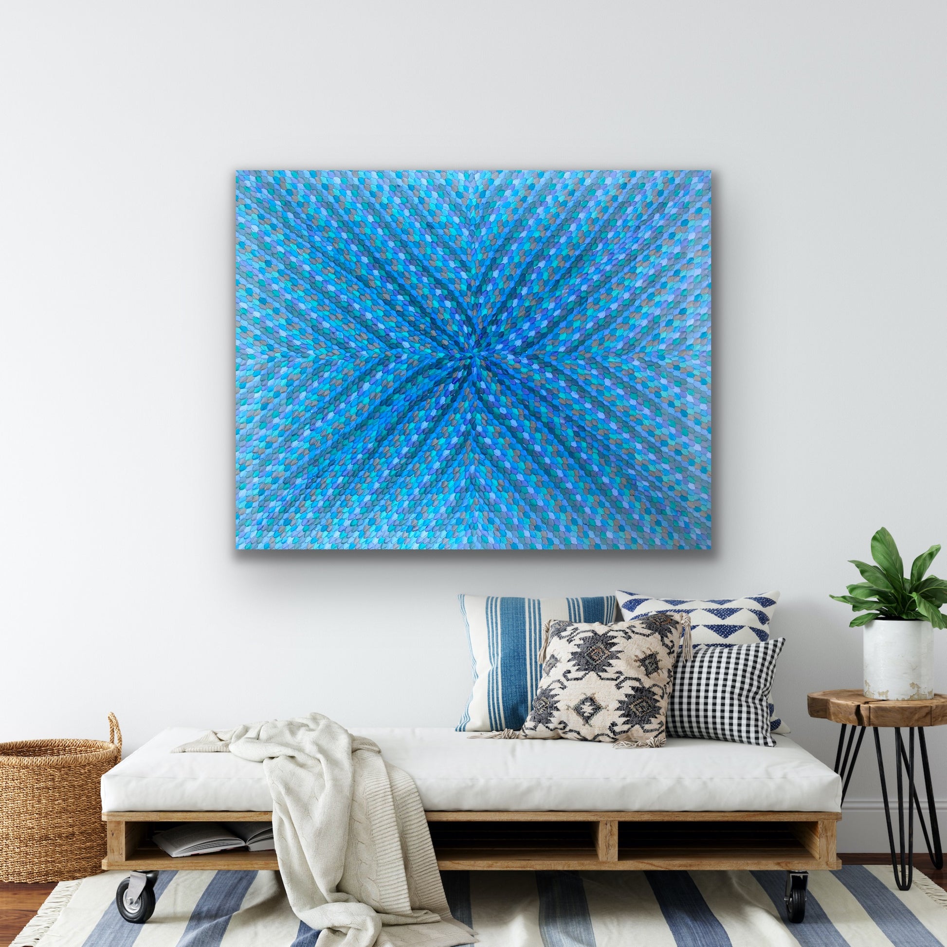 This artwork is inspired by beautiful colors of ocean surrounding Australia. It is part of the abstract series from my geometric art collection. Color palette includes dark and light blue and turquoise shades.